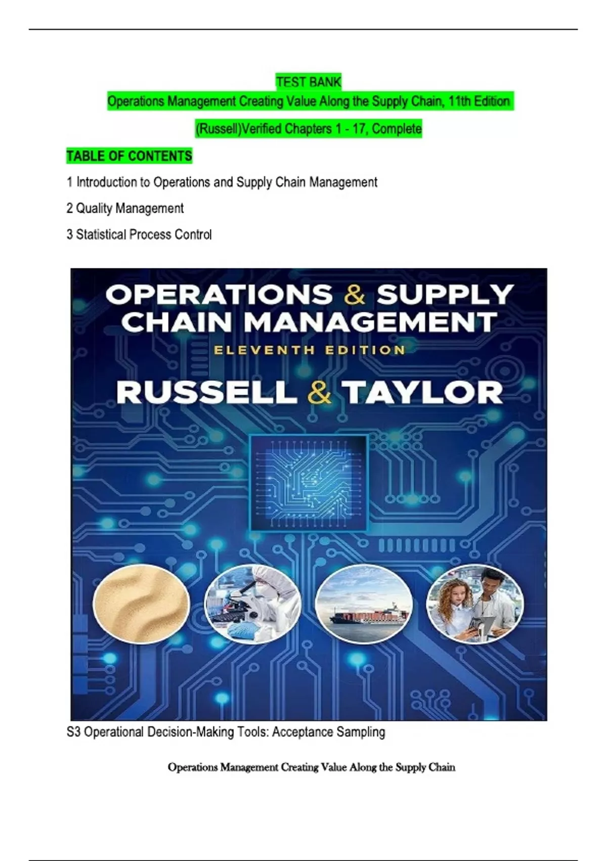 TEST BANK Operations Management Creating Value Along the Supply Chain, 11th Edition (Russell)Verified Chapters 1 - 17, Complete