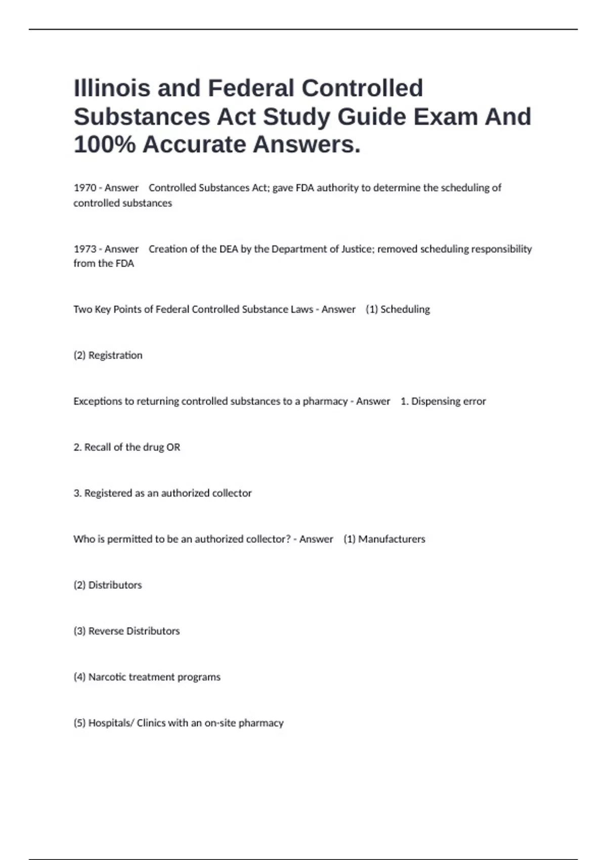 Illinois and Federal Controlled Substances Act Study Guide Exam And 100% Accurate Answers.