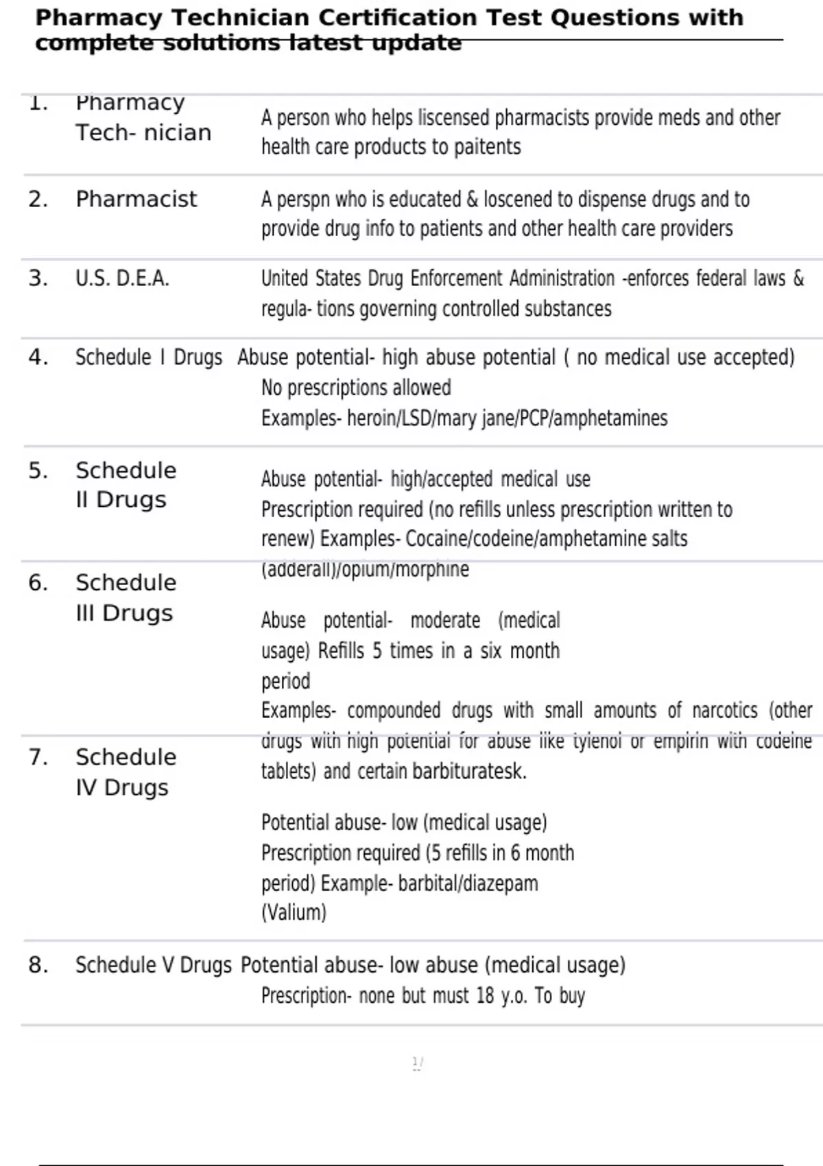 ,Pharmacy Technician Certification Test Questions with