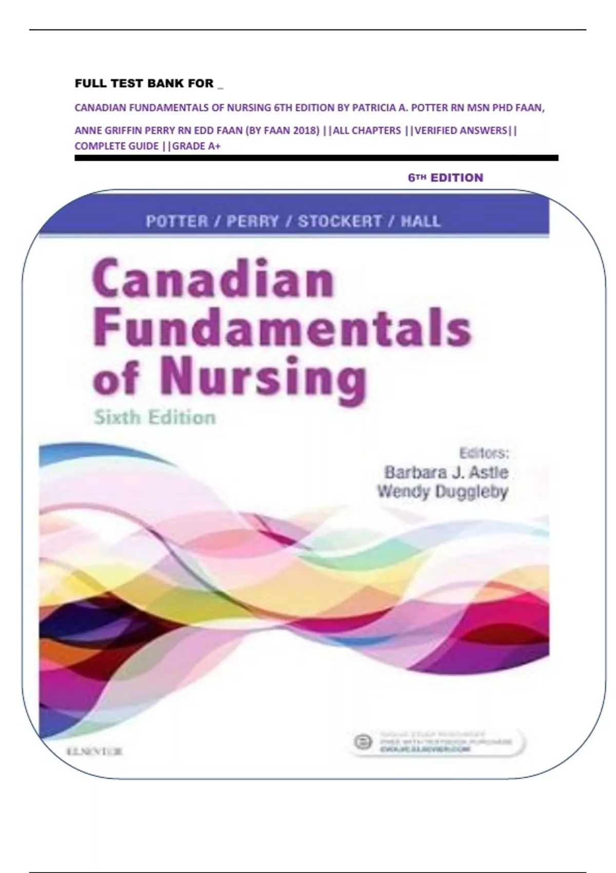 CANADIAN FUNDAMENTALS OF NURSING 6TH EDITION BY PATRICIA A. POTTER RN MSN PHD FAAN,