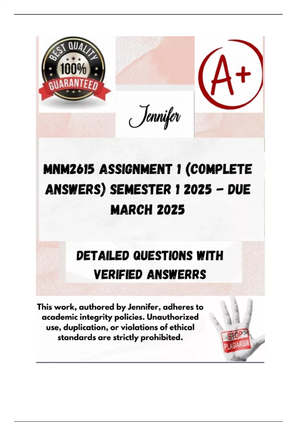 Semester 1 2025 - DUE March 2025; 100% Correct solutions