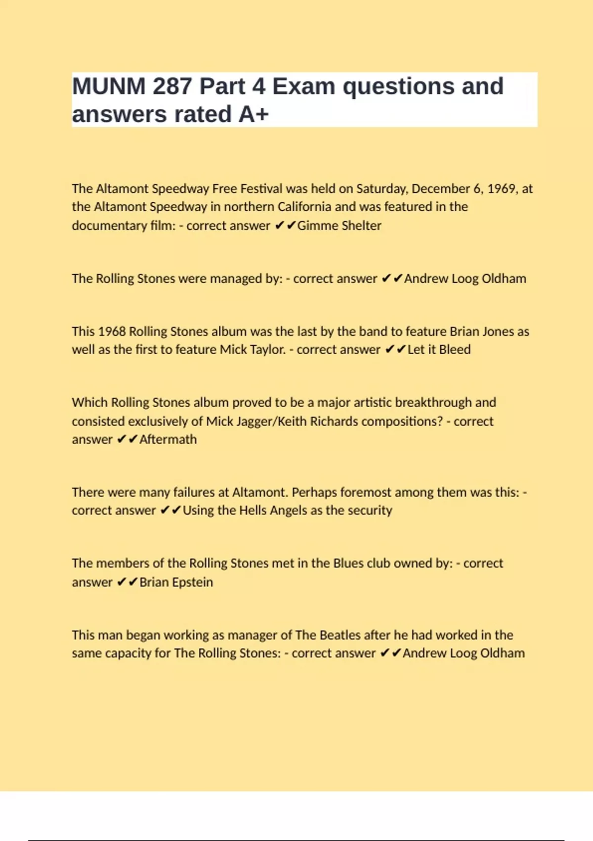 MUNM 287 Part 4 Exam questions and answers rated A+