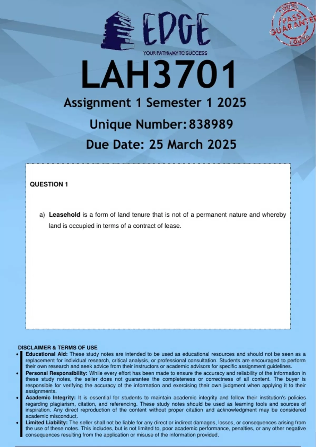 LAH3701 Assignment 1 (ANSWERS) Semester 1 2025 - DISTINCTION GUARANTEED