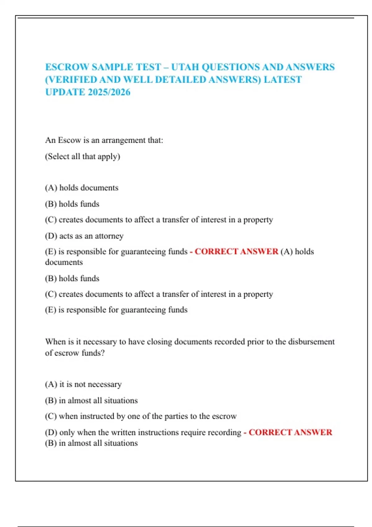 (E) instrument to convey a title policy - CORRECT ANSWER (C) used to