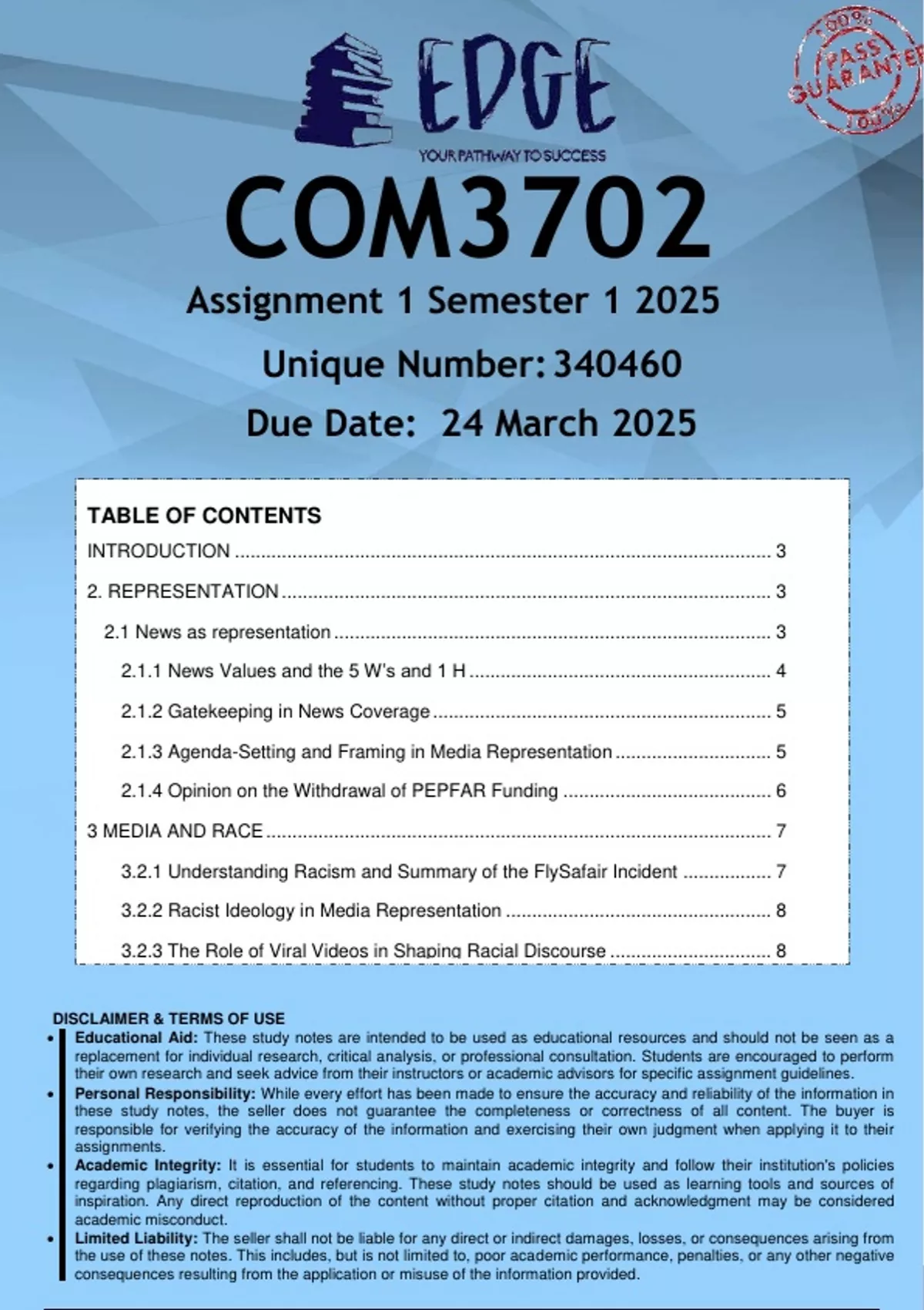 COM3702 Assignment 1 (ANSWERS) Semester 1 2025 - DISTINCTION GUARANTEED