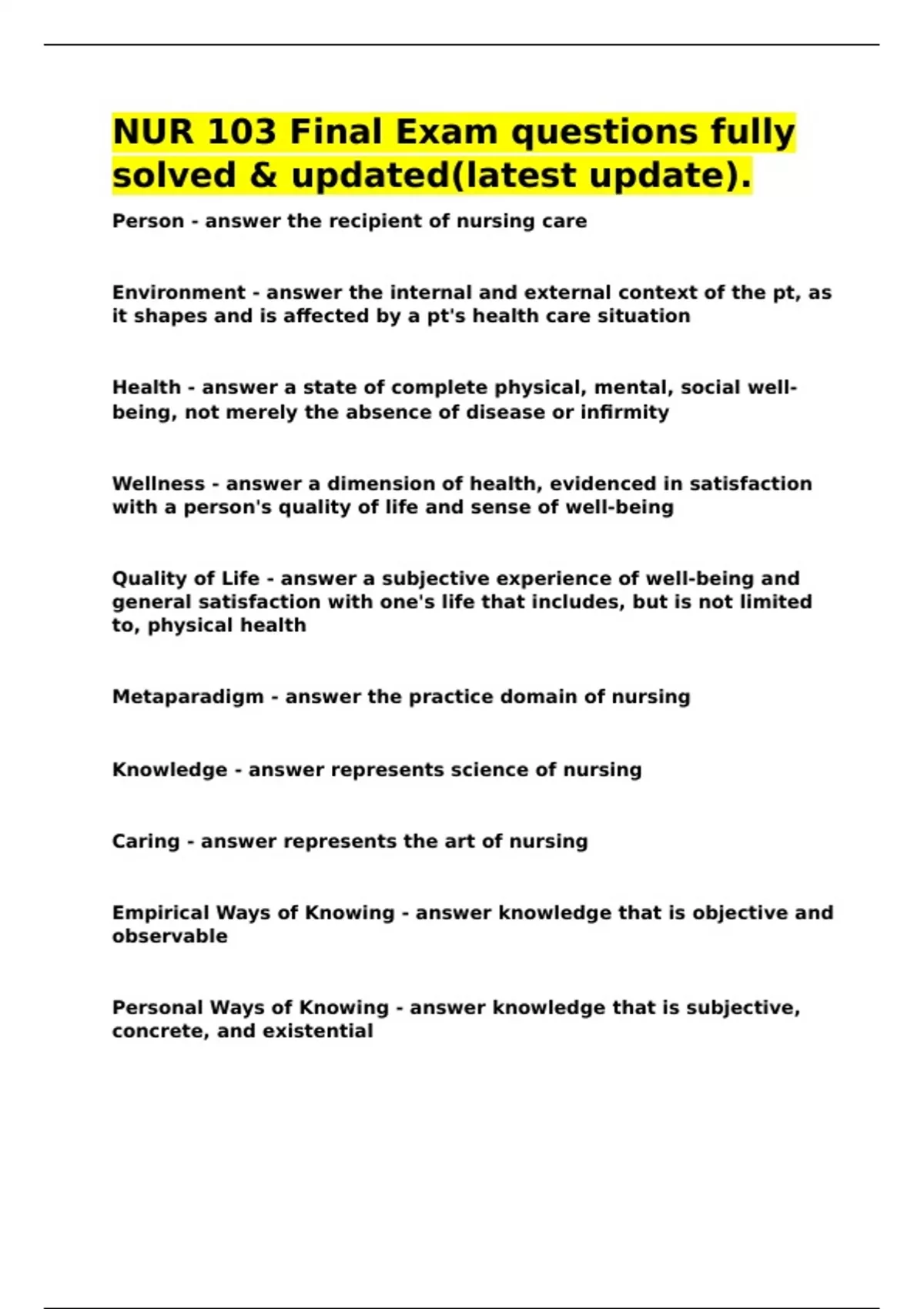 NUR 103 Final Exam questions fully solved & updated(latest update)