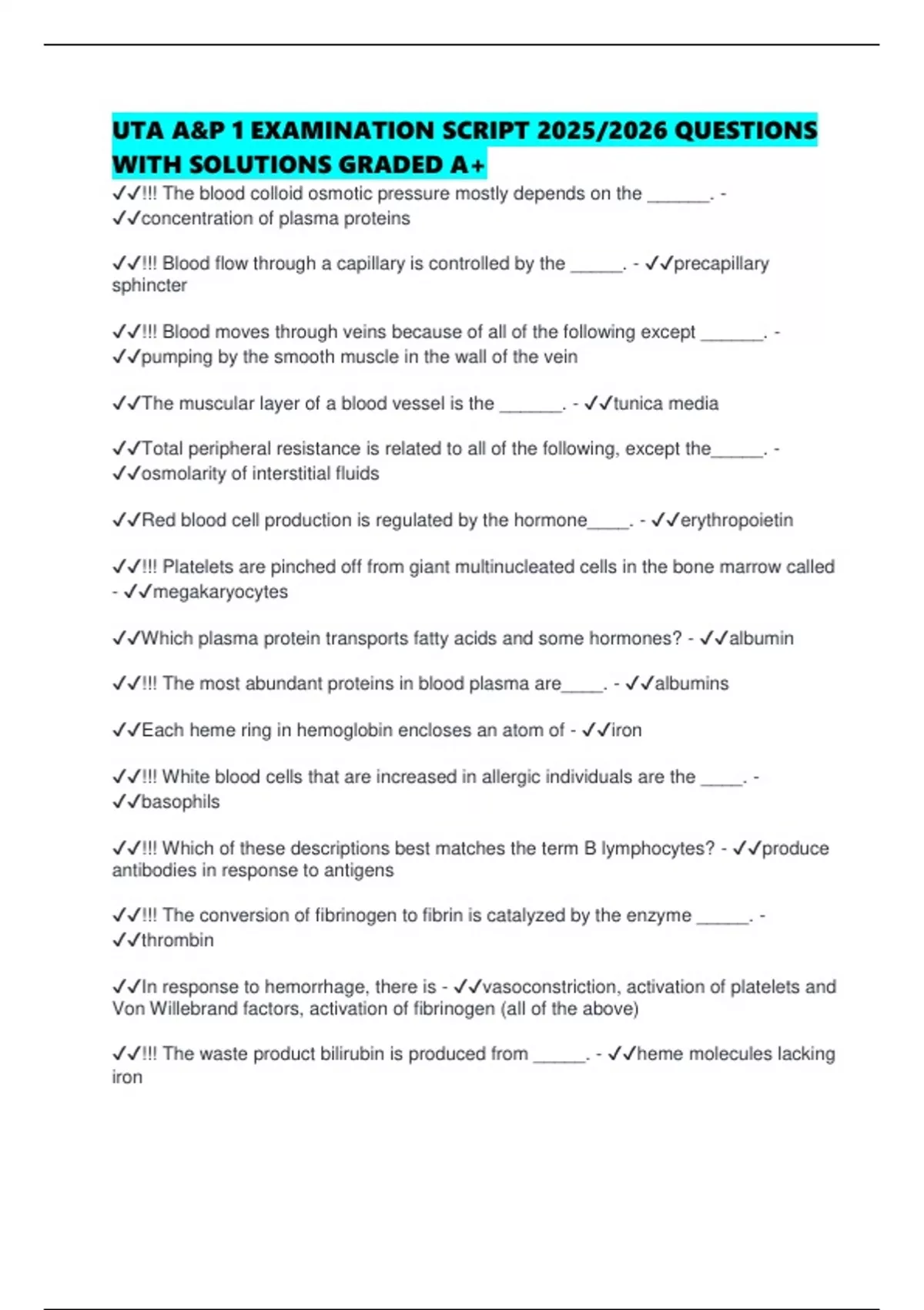 ✔✔!!! Blood flow through a capillary is controlled by the _____. - ✔✔precapillary