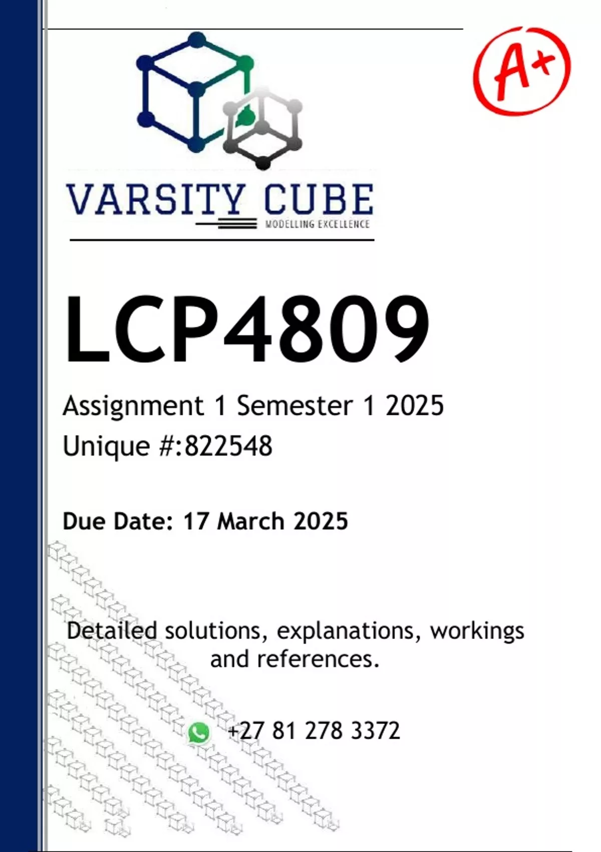 LCP4809 Assignment 1 (DETAILED ANSWERS) Semester 1 2025 - DISTINCTION GUARANTEED - DISTINCTION GUARANTEED - DISTINCTION GUARANTEED Answers, guidelines, workings and references ,..