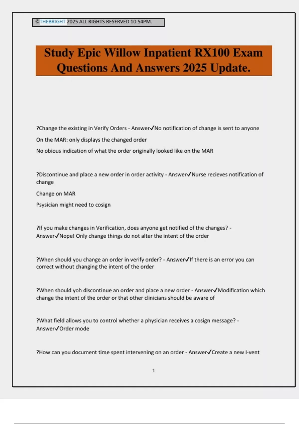 Study Epic Willow Inpatient RX100 Exam
