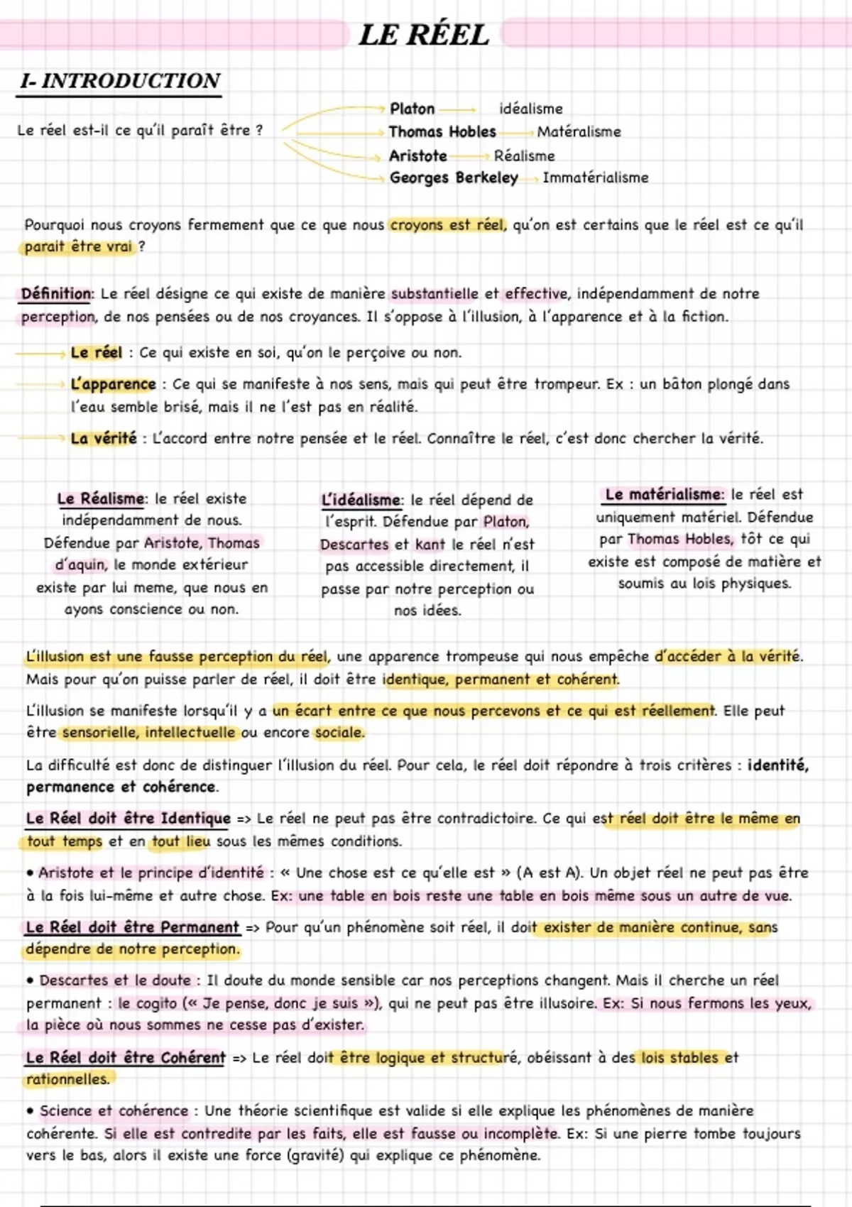 Défendue par Aristote, Thomas Descartes et kant le réel n’est par Thomas Hobles, tôt ce qui