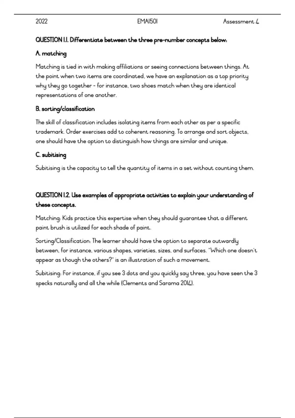 QUESTION 1.1. Differentiate between the three pre-number concepts below: