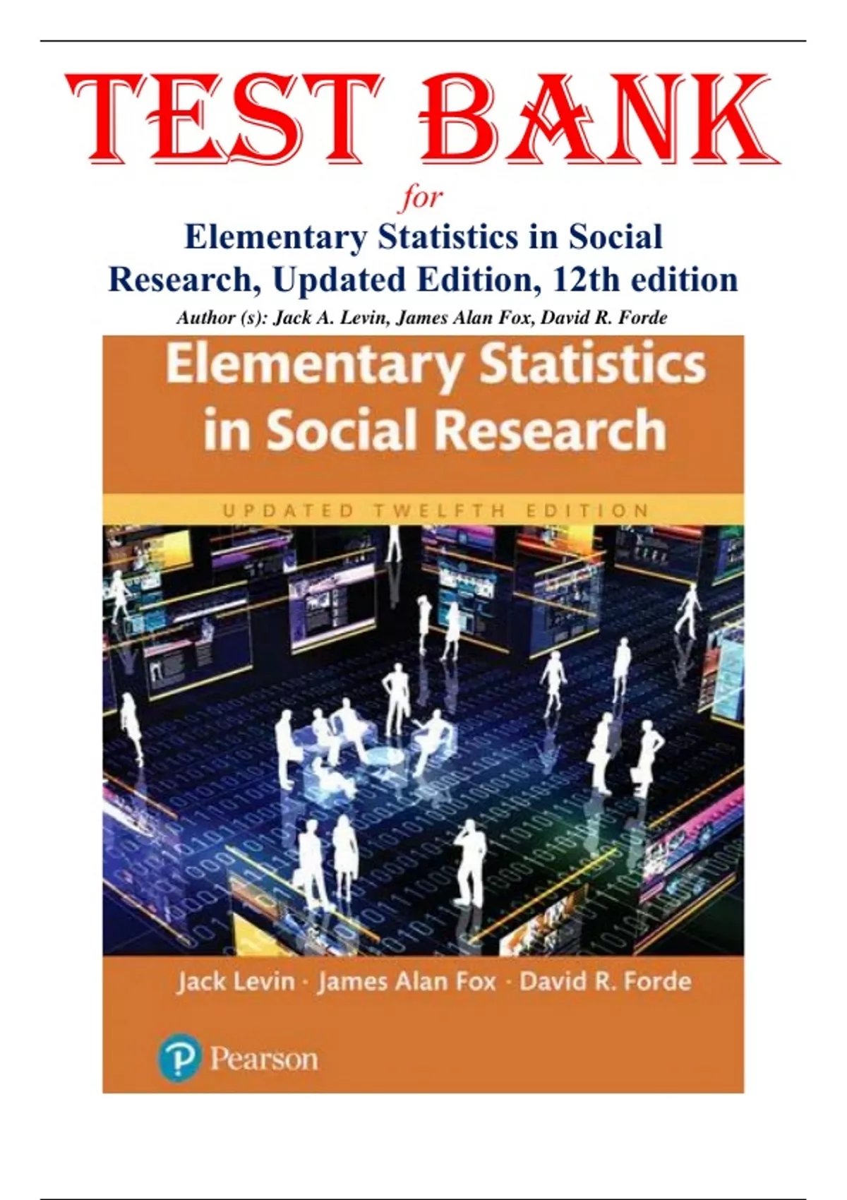 Test Bank for Elementary Statistics in Social Research, Updated Edition, 12th edition by Levin. Full Chapters Include;.....1. Why the Social Researcher Uses Statistics 2. Organizing the Data 3. Measures of Central Tendency 4. Measures of Variability 5. Probability and the Normal Curve 6. Samples and Populations 7. Testing Differences between Means 8. Analysis of Variance 9. Nonparametric Tests of Significance 10. Correlation 11. Regression Analysis 12. Nonparametric Measures of Correlation 13. Choosing Statistical Procedures for Research Problems