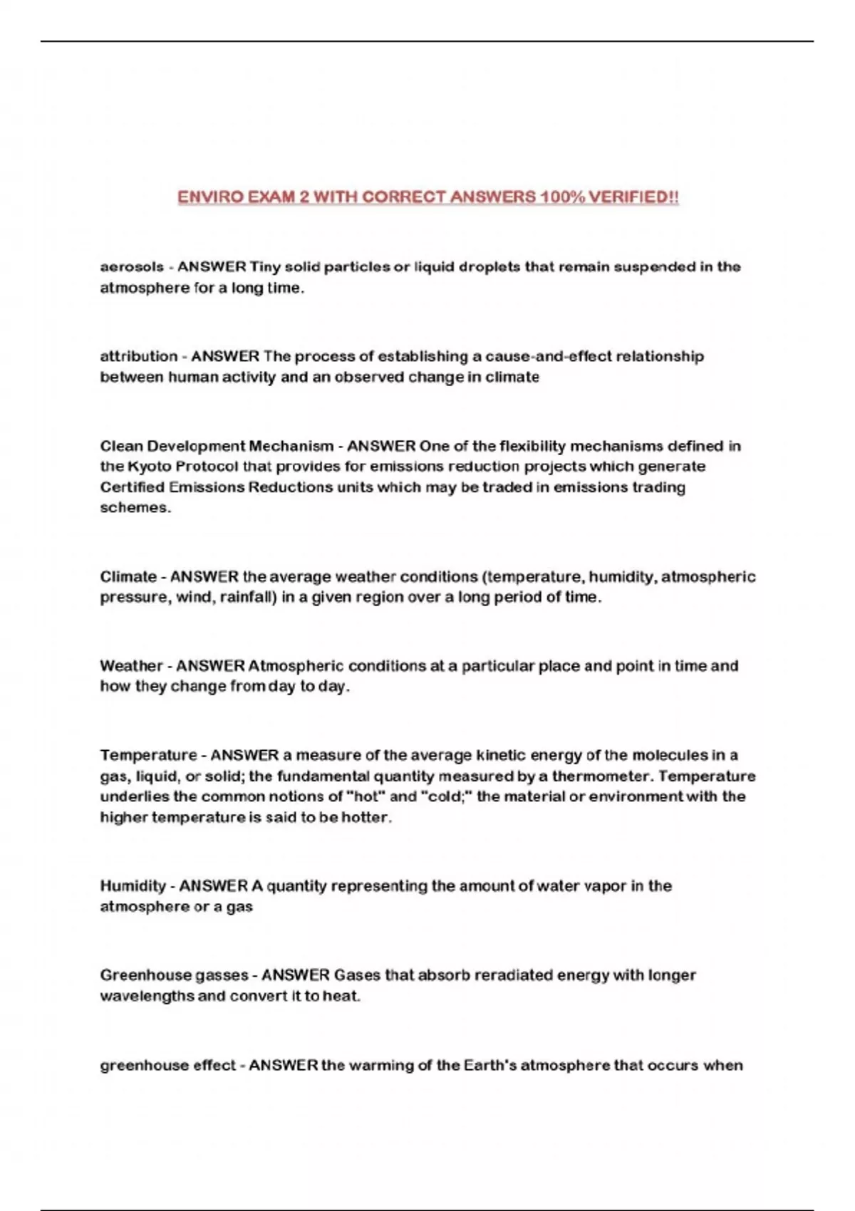 ENVIRO EXAM 2 WITH CORRECT ANSWERS 100% VERIFIED!!...