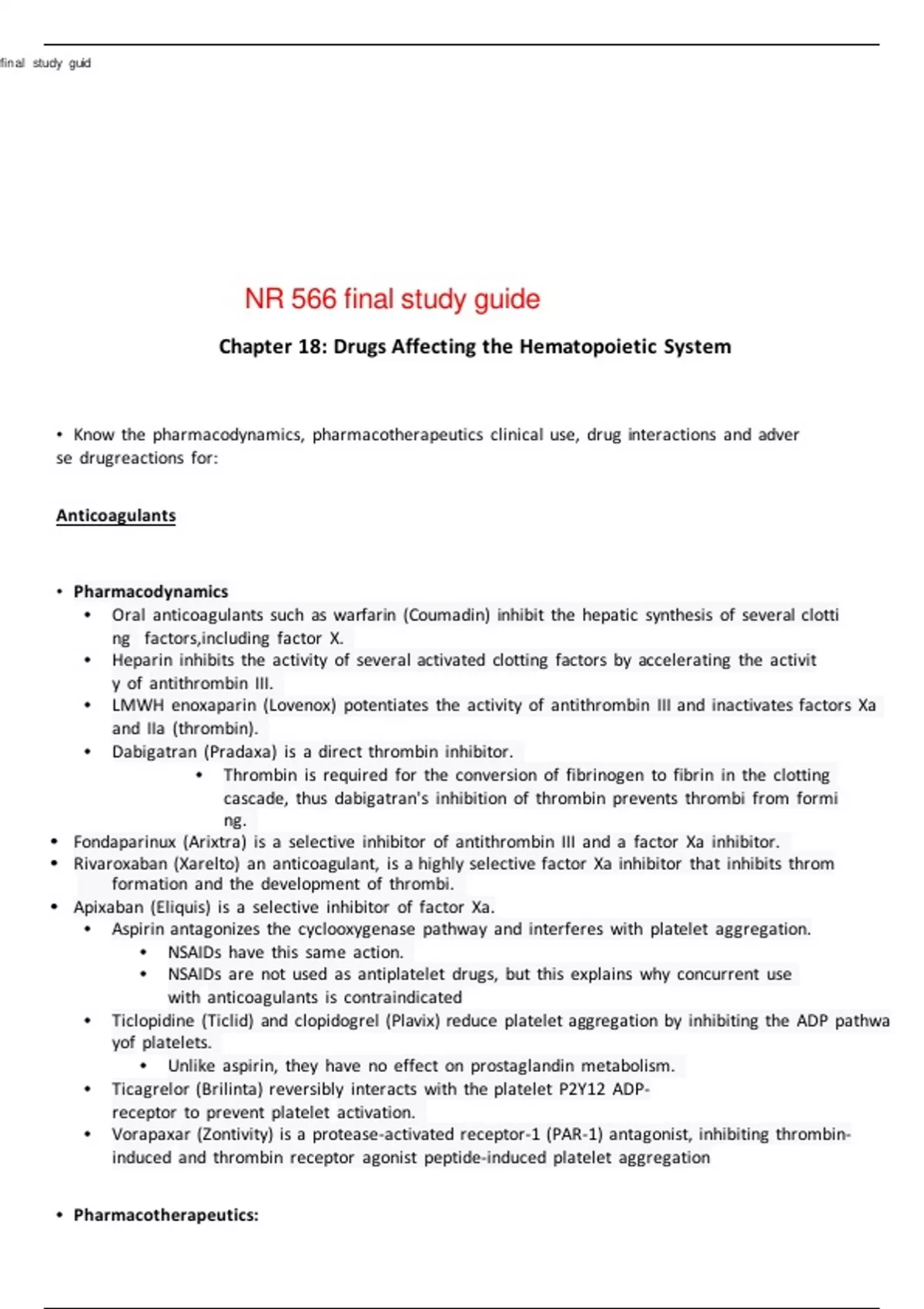 Chapter 18: Drugs Affecting the Hematopoietic System