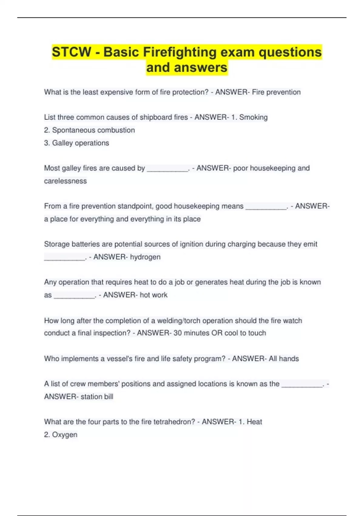 STCW - Basic FSTCW - Basic Firefighting exam questions and answersSTCW - Basic Firefighting exam questions and answersSTCW - Basic Firefighting exam questions and answersirefighting exam questions and answers