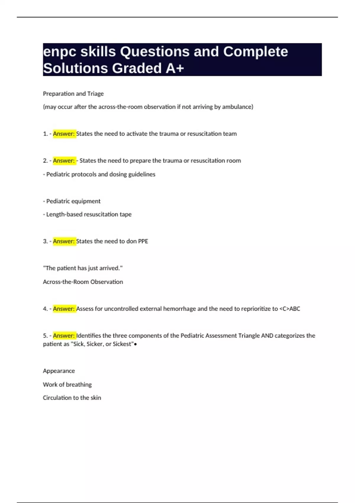 5. - Answer: Identifies the three components of the Pediatric Assessment Triangle AND categorizes the