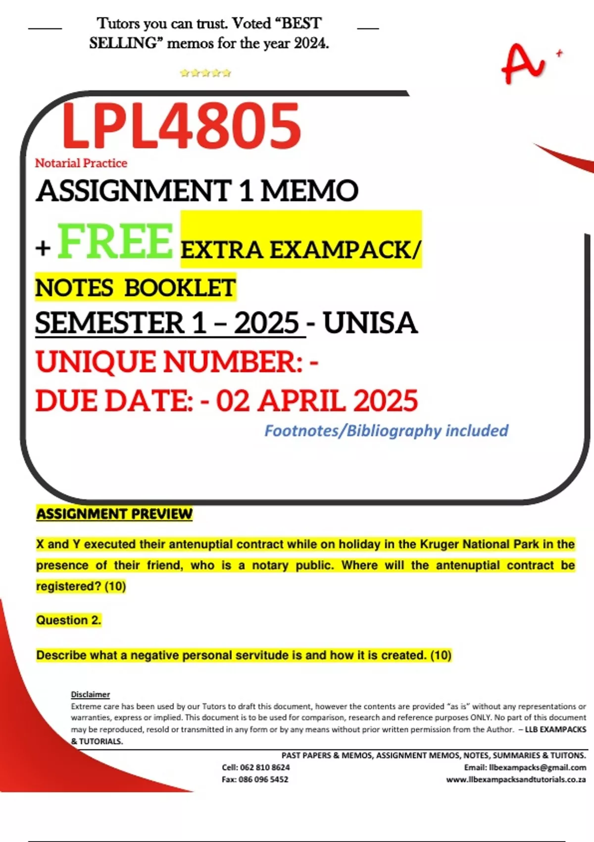 PAST PAPERS & MEMOS, ASSIGNMENT MEMOS, NOTES, SUMMARIES & TUITONS.