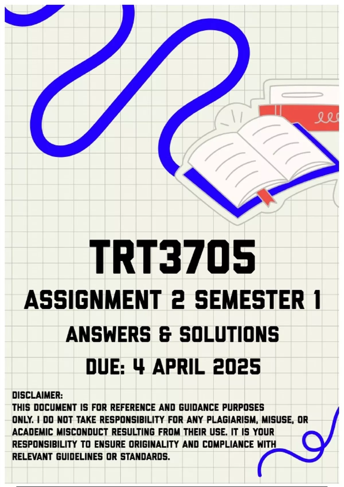 Please also note that the author of this document will not be responsible for any plagiarism you