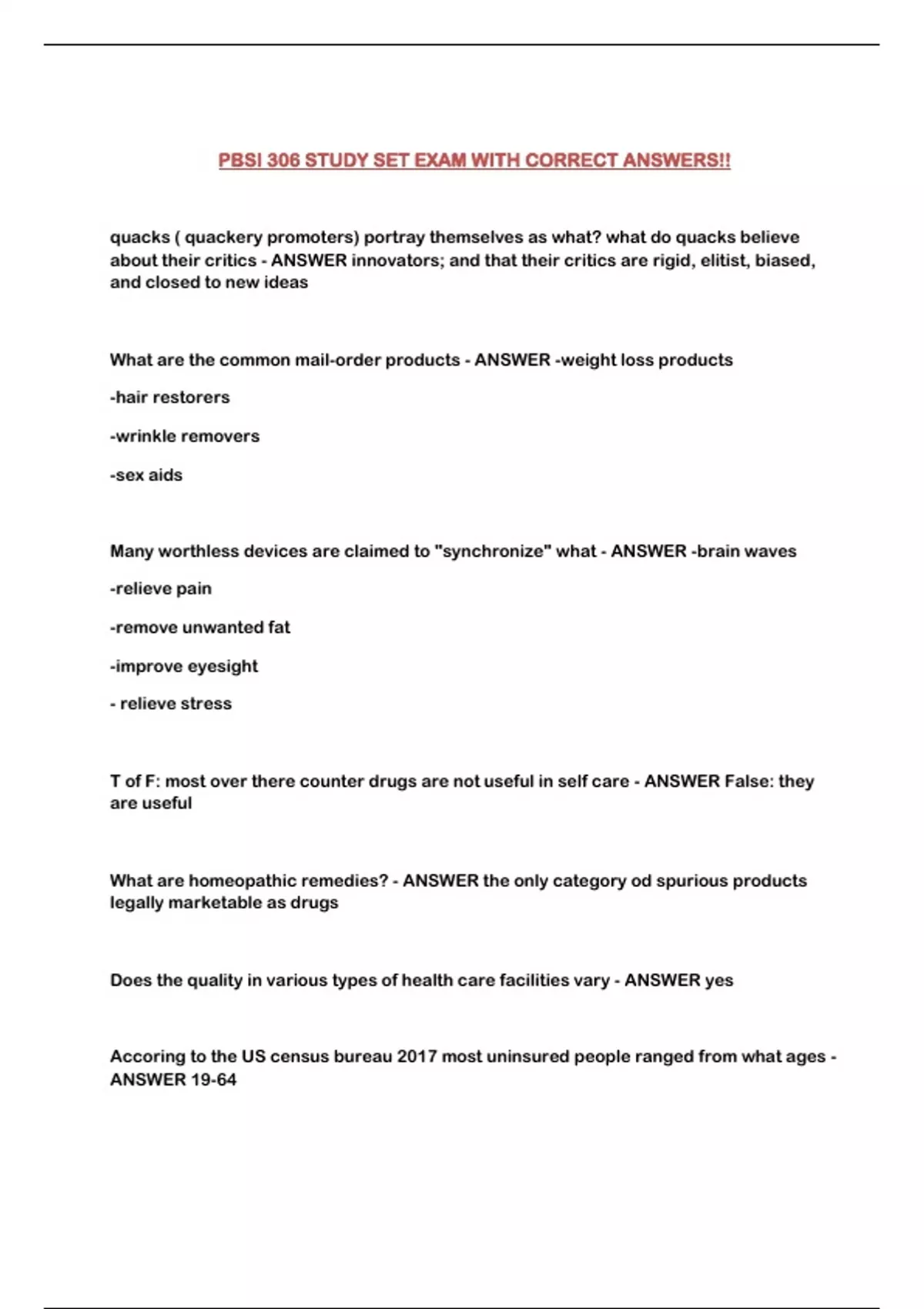 PBSI 306 STUDY SET EXAM WITH CORRECT ANSWERS!!