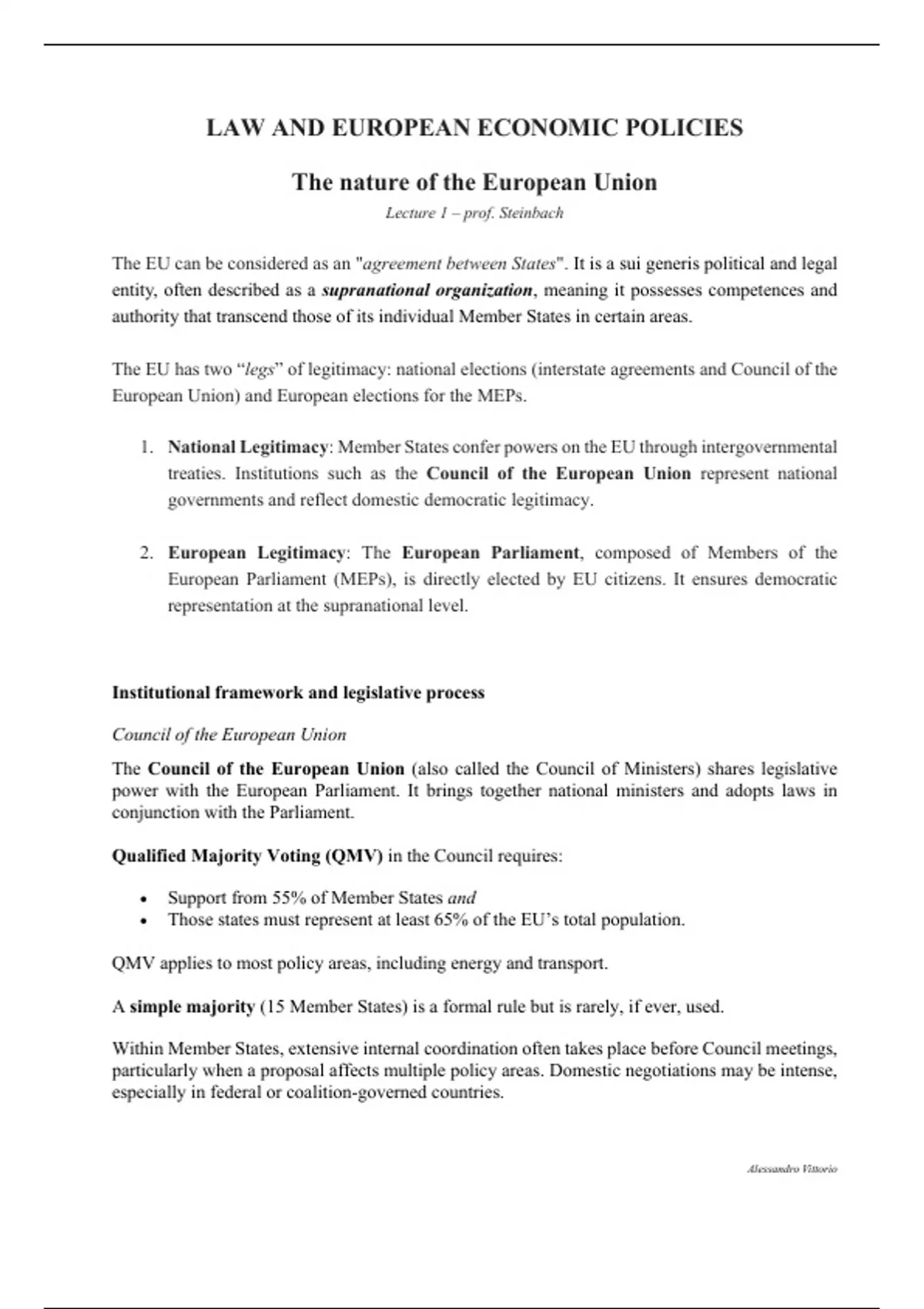 The EU has two “legs” of legitimacy: national elections (interstate agreements and Council of the