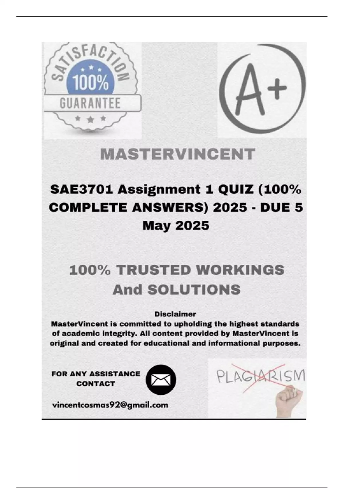 SAE3701 Assignment 1 QUIZ (100% COMPLETE ANSWERS) 2025 - DUE 5 May 2025; 100% correct solutions and explanations.