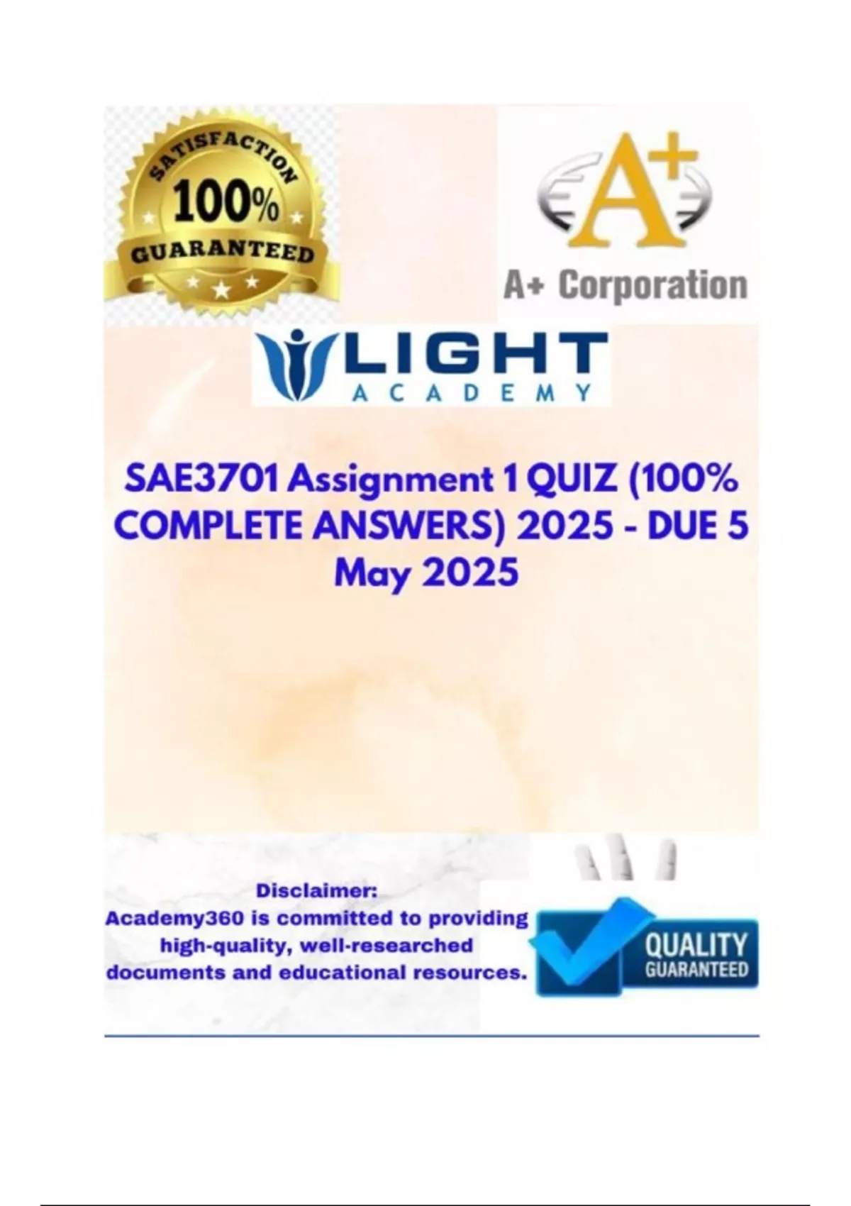 SAE3701 Assignment 1 QUIZ (100% COMPLETE ANSWERS) 2025 - DUE 5 May 2025 ;100% trusted, comprehensive and complete reliable solution with clear explanation