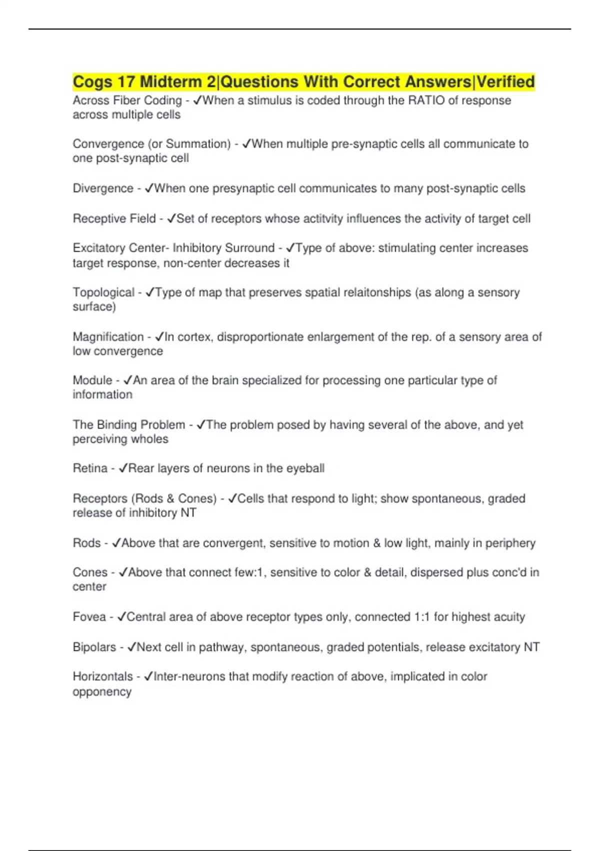 Receptors (Rods & Cones) - ✔Cells that respond to light; show spontaneous, graded