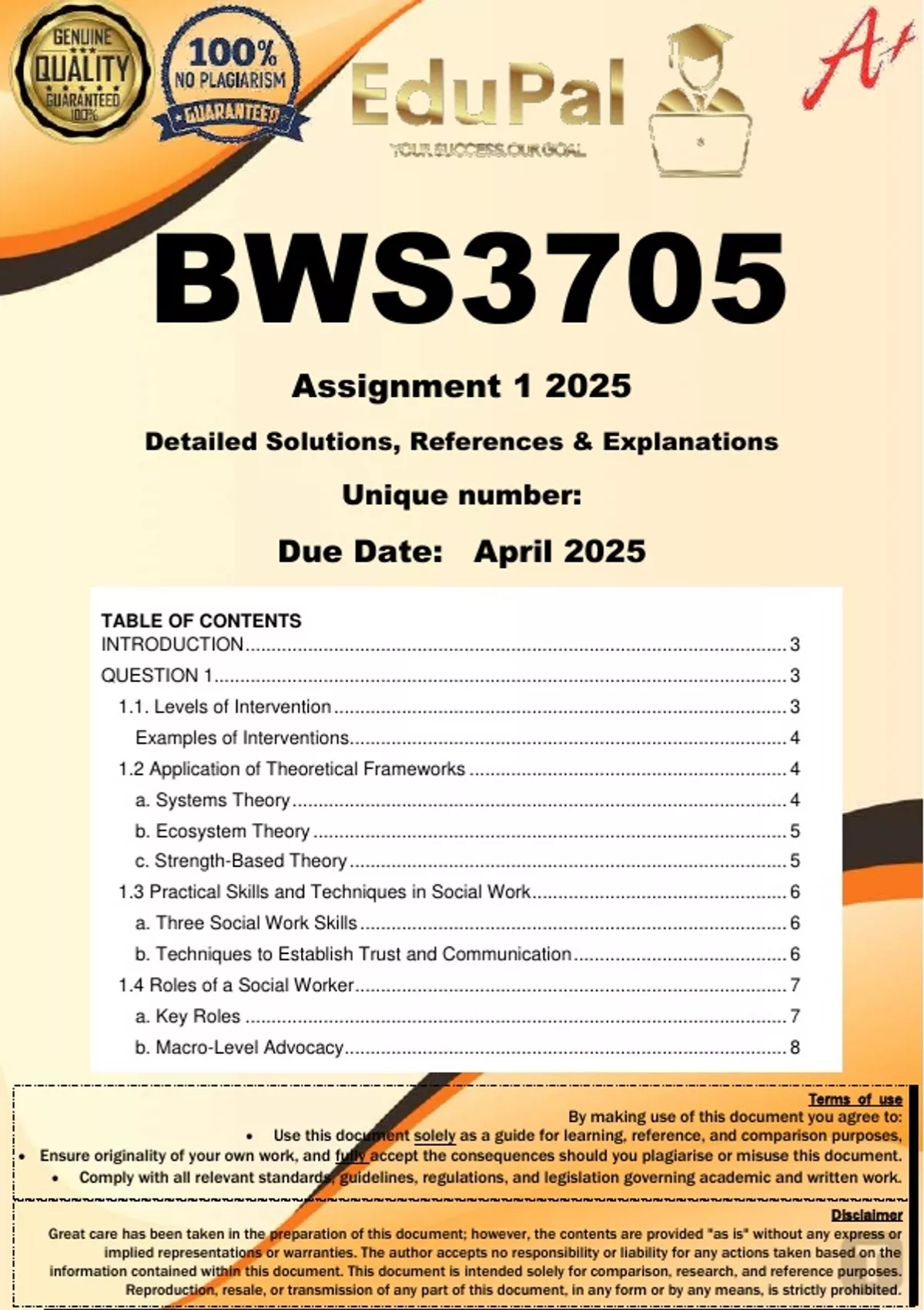 Ensure originality of your own work, and fully accept the consequences should you plagiarise or misuse this document.