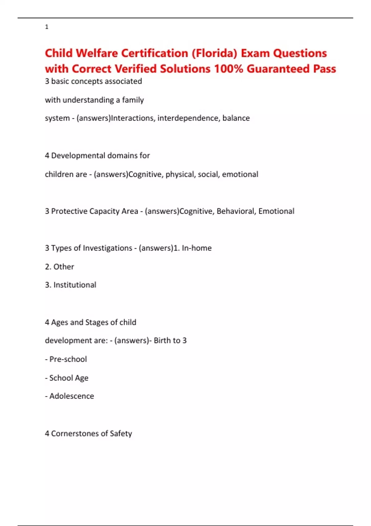 Child Welfare Certification (Florida) Exam Questions