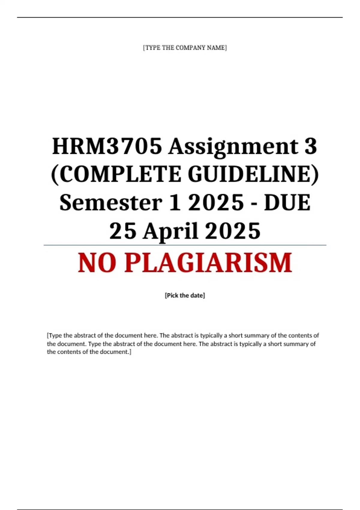 HRM3705 Assignment 3 (COMPLETE GUIDELINE) Semester 1 2025 - DUE 25 April 2025