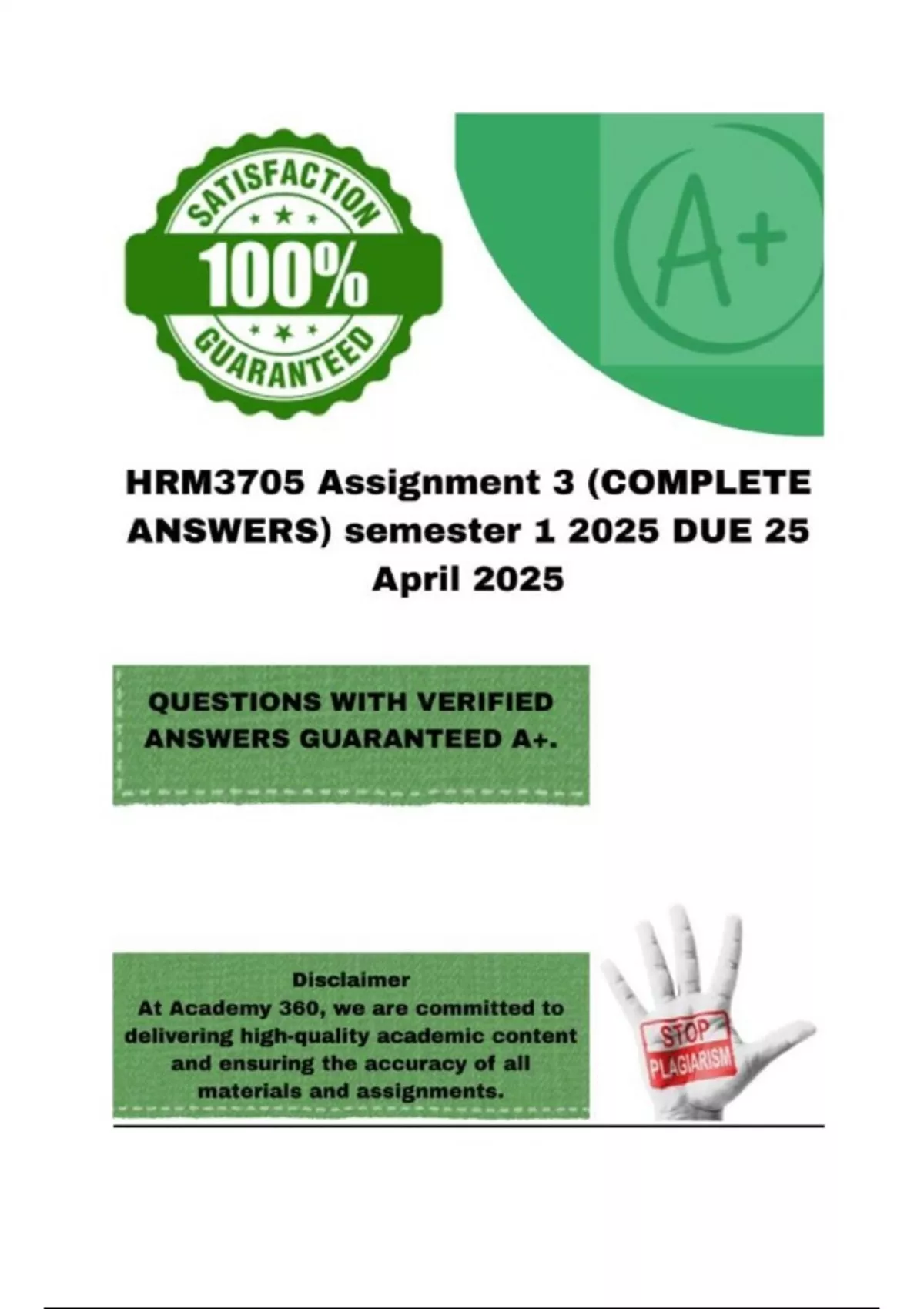 HRM3705 Assignment 3 (COMPLETE ANSWERS) semester 1 2025 DUE 25 April 2025; 100% correct solutions and explanations.