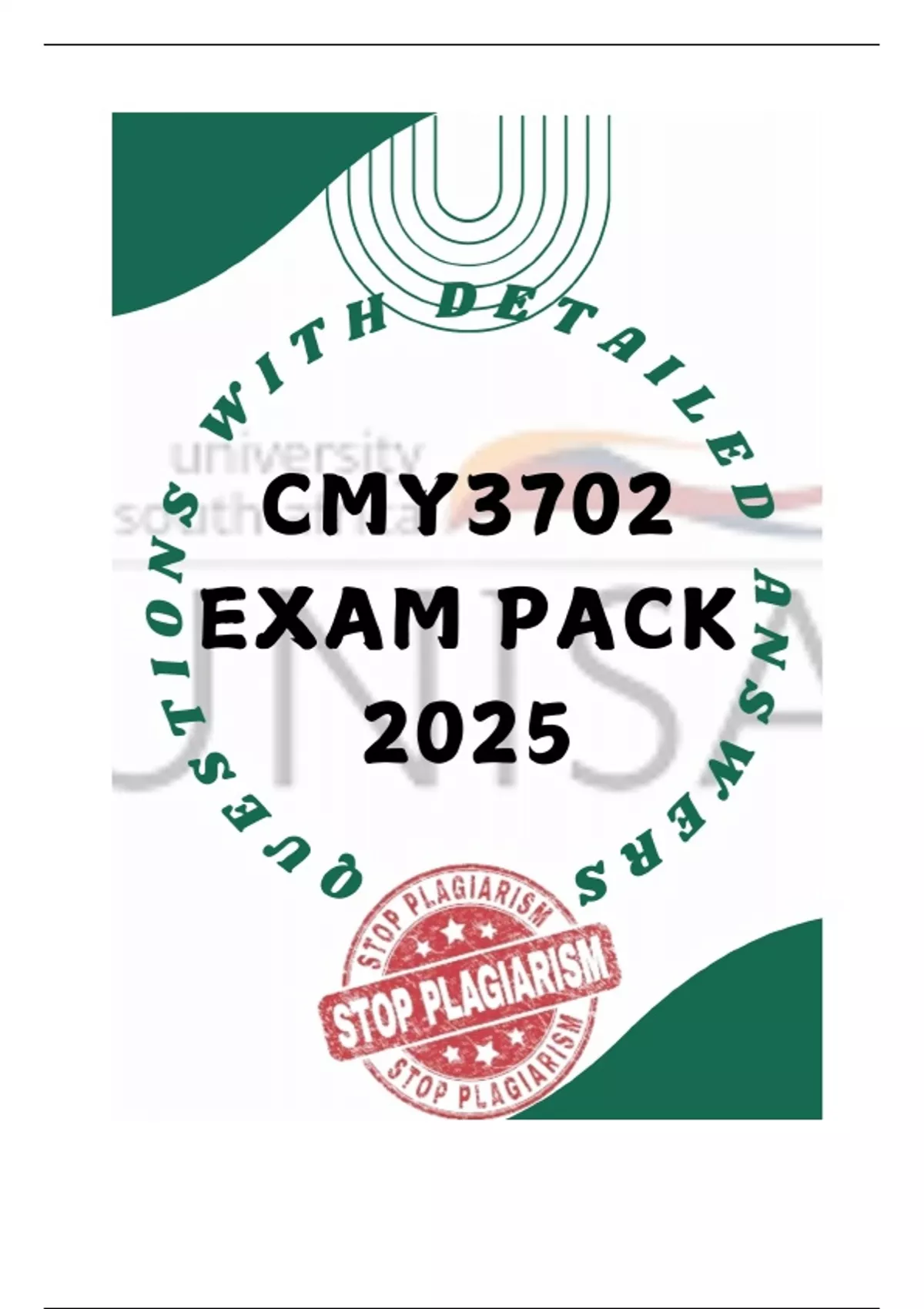 CMY3702 EXAM PACK 2025 QUESTIONS WITH RESPECTIVE ANSWERS, CREATED FOR EXAM REVISION FROM RECENT PAST EXAM QUESTIONS. FOLLOW MY PROFILE FOR VAST REVISION MATERIALS. PAST PAPERS, PRESCRIBED BOOKS AND TUTORIAL LETTERS. CHECK MY PROFILE AND SEARCH FOR ANY UNIT, e.g., ENG1504
