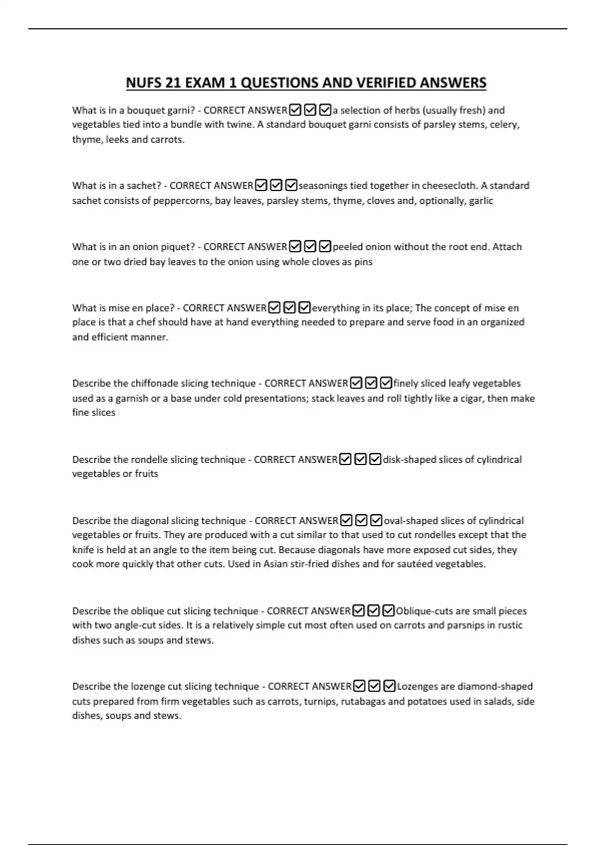 What is in a sachet? - CORRECT ANSWER✅✅✅seasonings tied together in cheesecloth. A standard