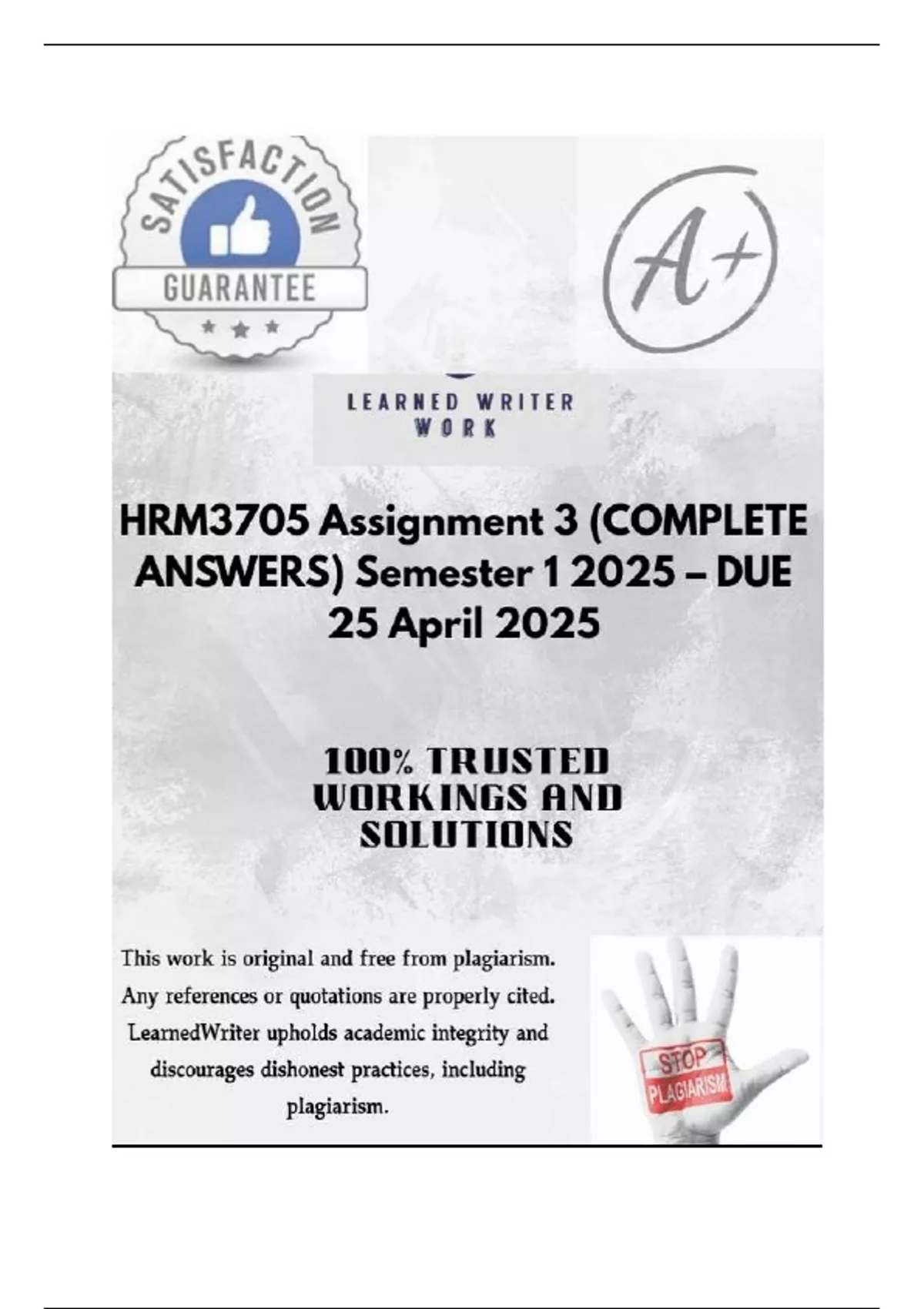 HRM3705 Assignment 3 (COMPLETE ANSWERS) Semester 1 2025 – DUE 25 April 2025; 100% trusted, comprehensive and complete reliable solution with clear explanation