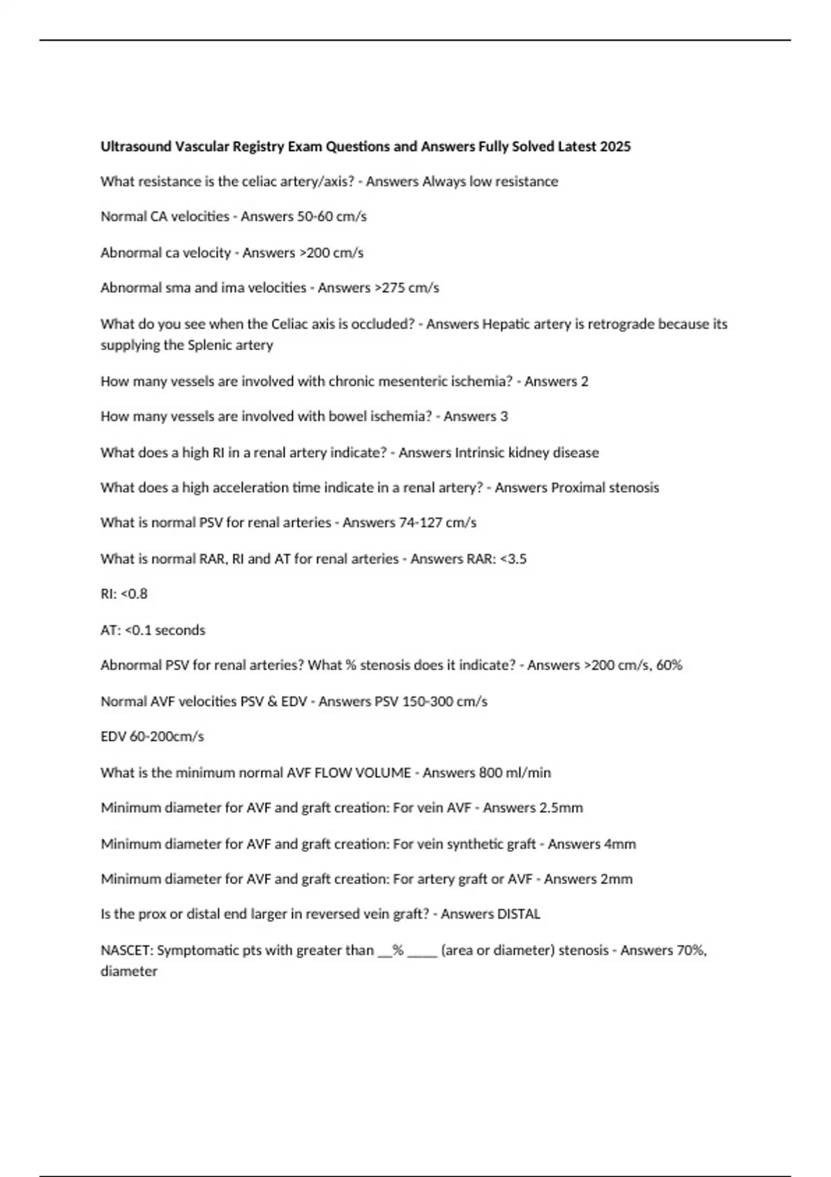 Abnormal ca velocity - Answers >200 cm/s