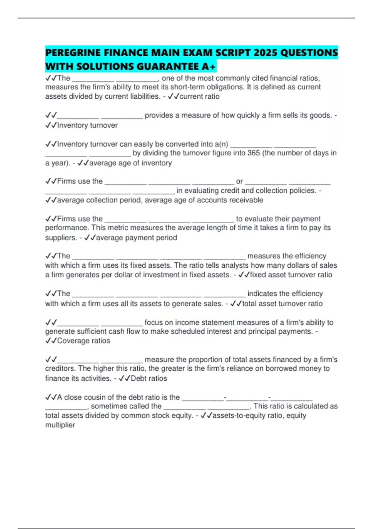 ✔✔The __________ __________, one of the most commonly cited financial ratios,