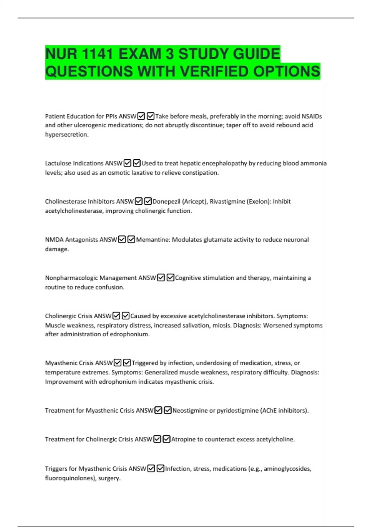 Myasthenic Crisis ANSW✅✅Triggered by infection, underdosing of medication, stress, or