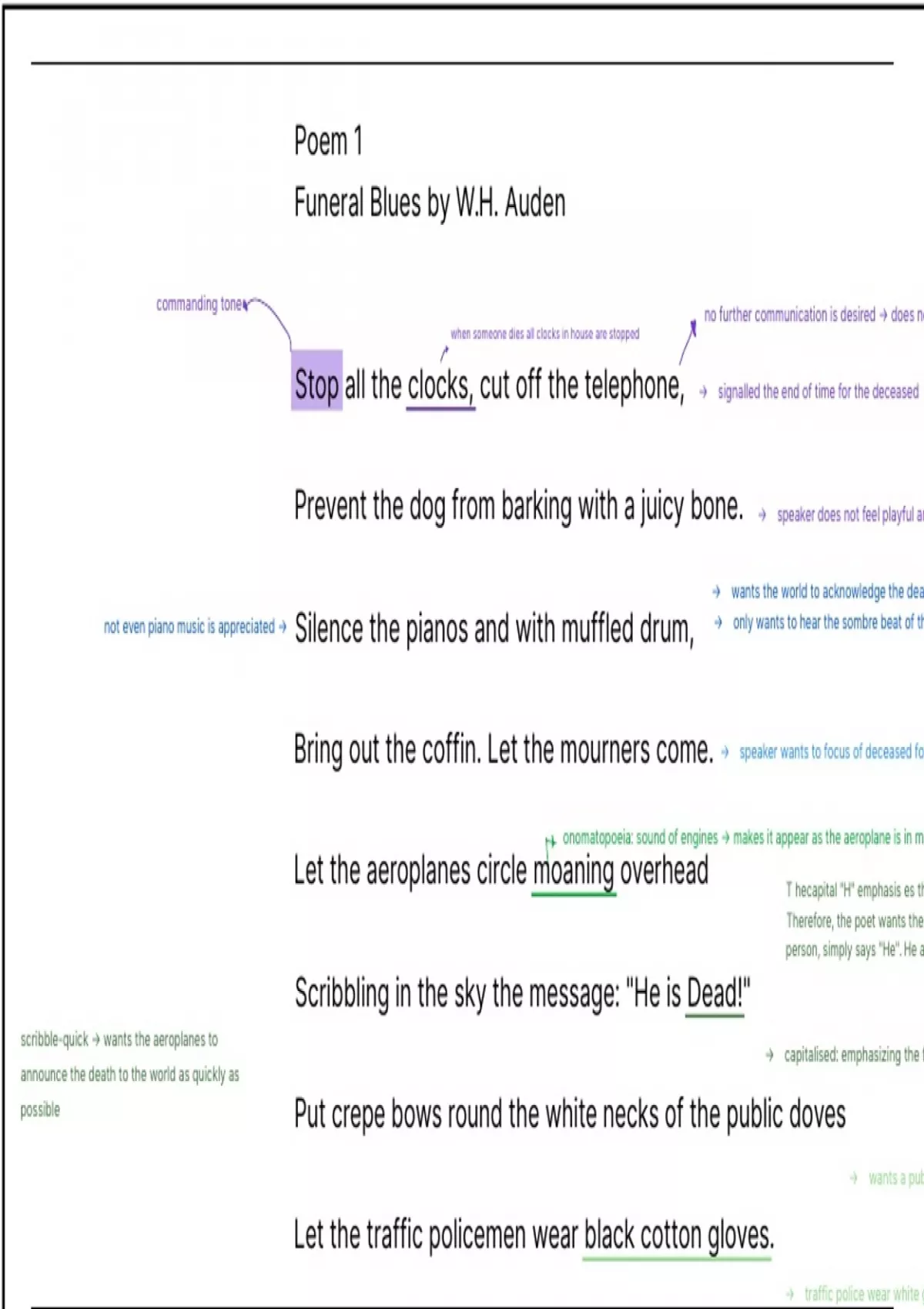 Stop all the clocks, cut off the telephone, → signalled the end of time for the deceased
