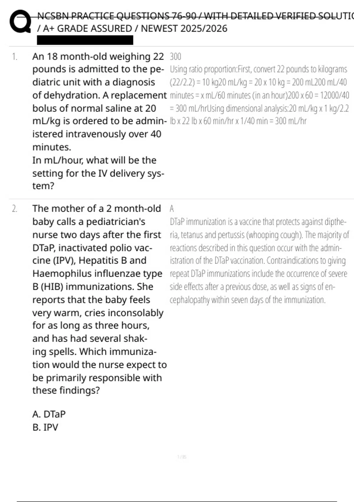 , NCSBN PRACTICE QUESTIONS 76-90 / WITH DETAILED VERIFIED SOLUTIO