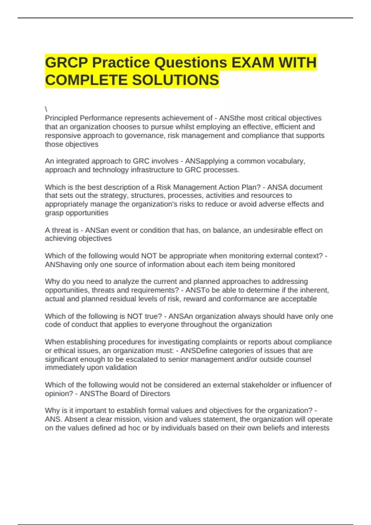 GRCP Practice Questions EXAM WITH