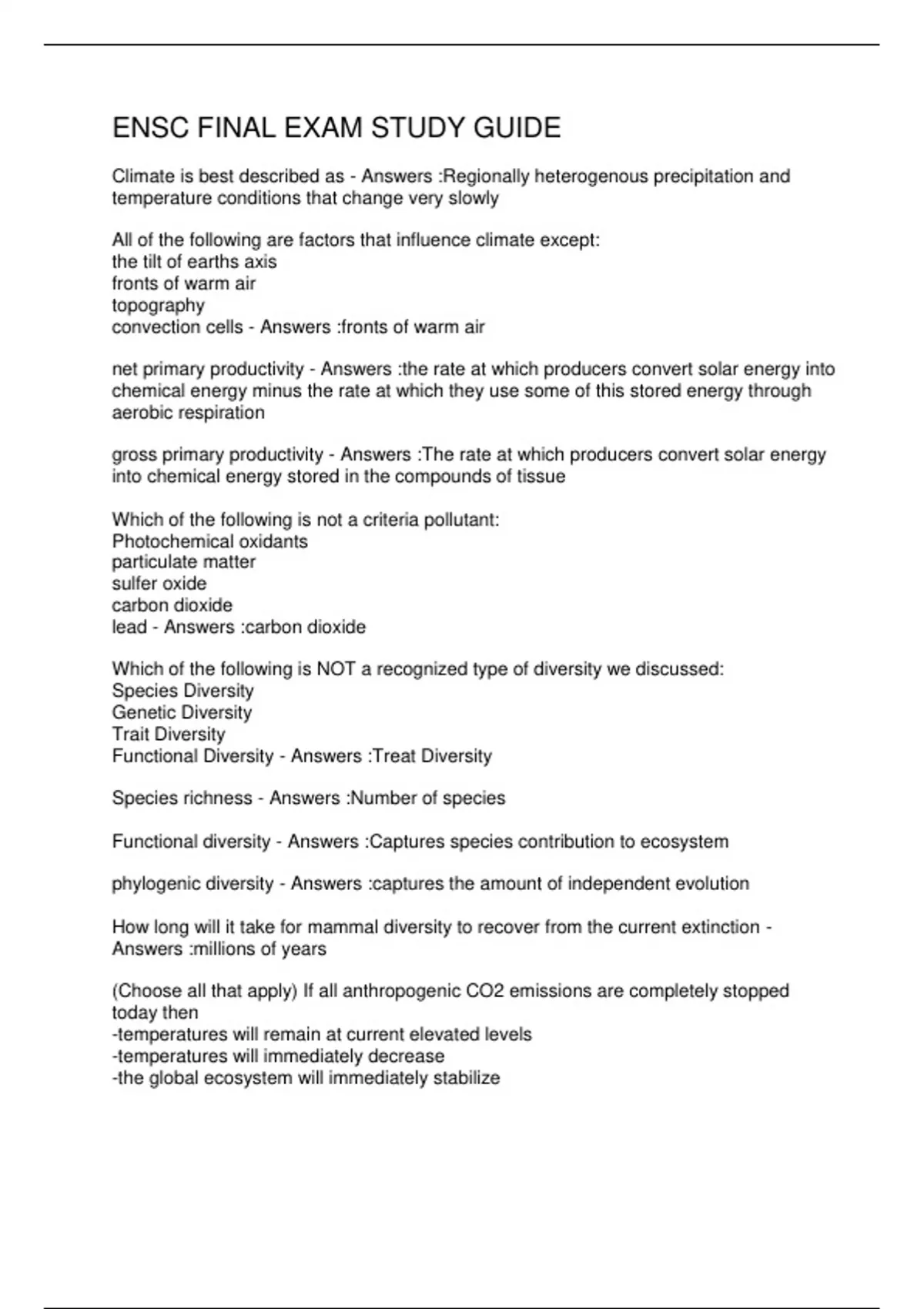 ENSC FINAL EXAM STUDY GUIDE