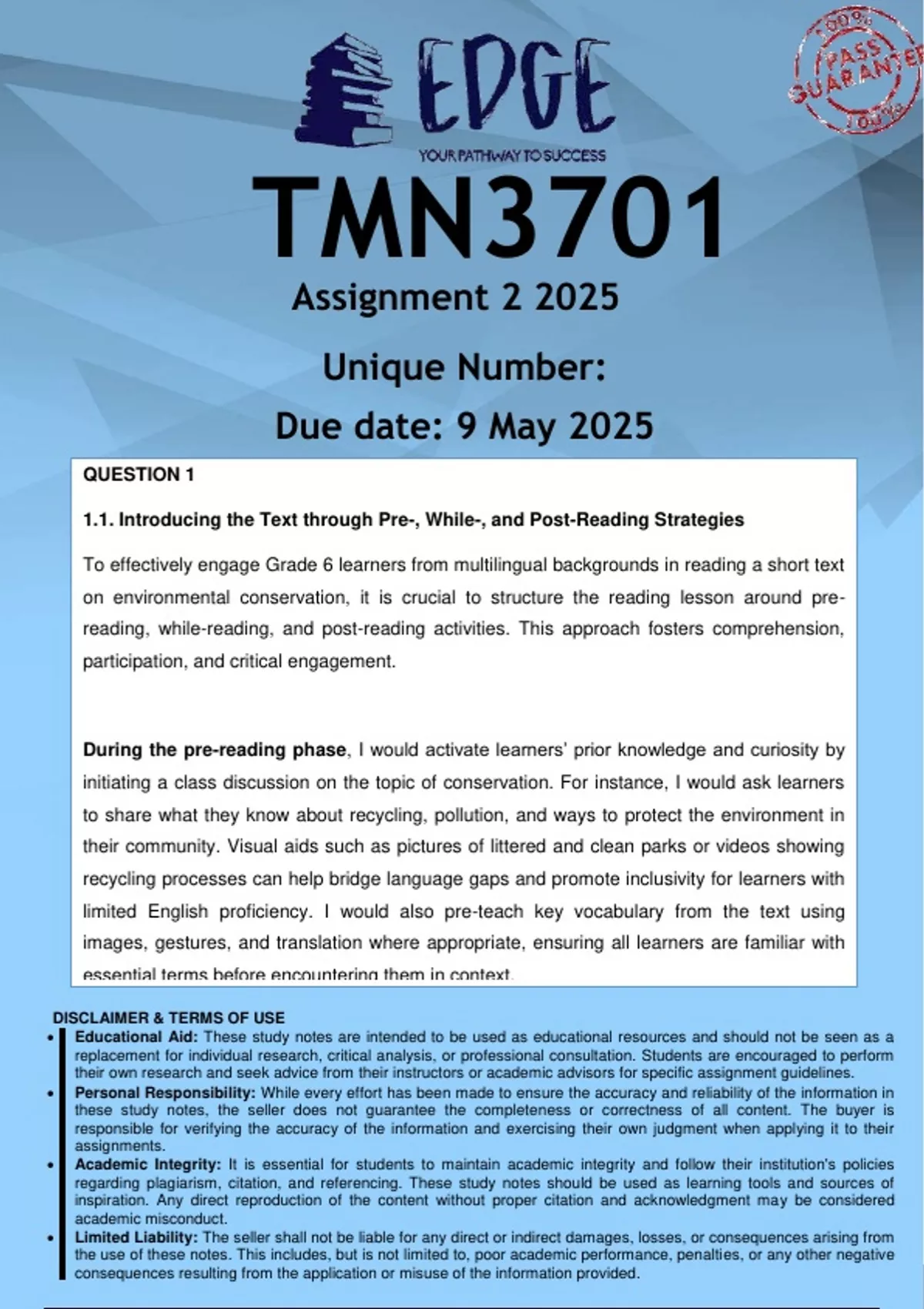 these study notes, the seller does not guarantee the completeness or correctness of all content. The buyer is