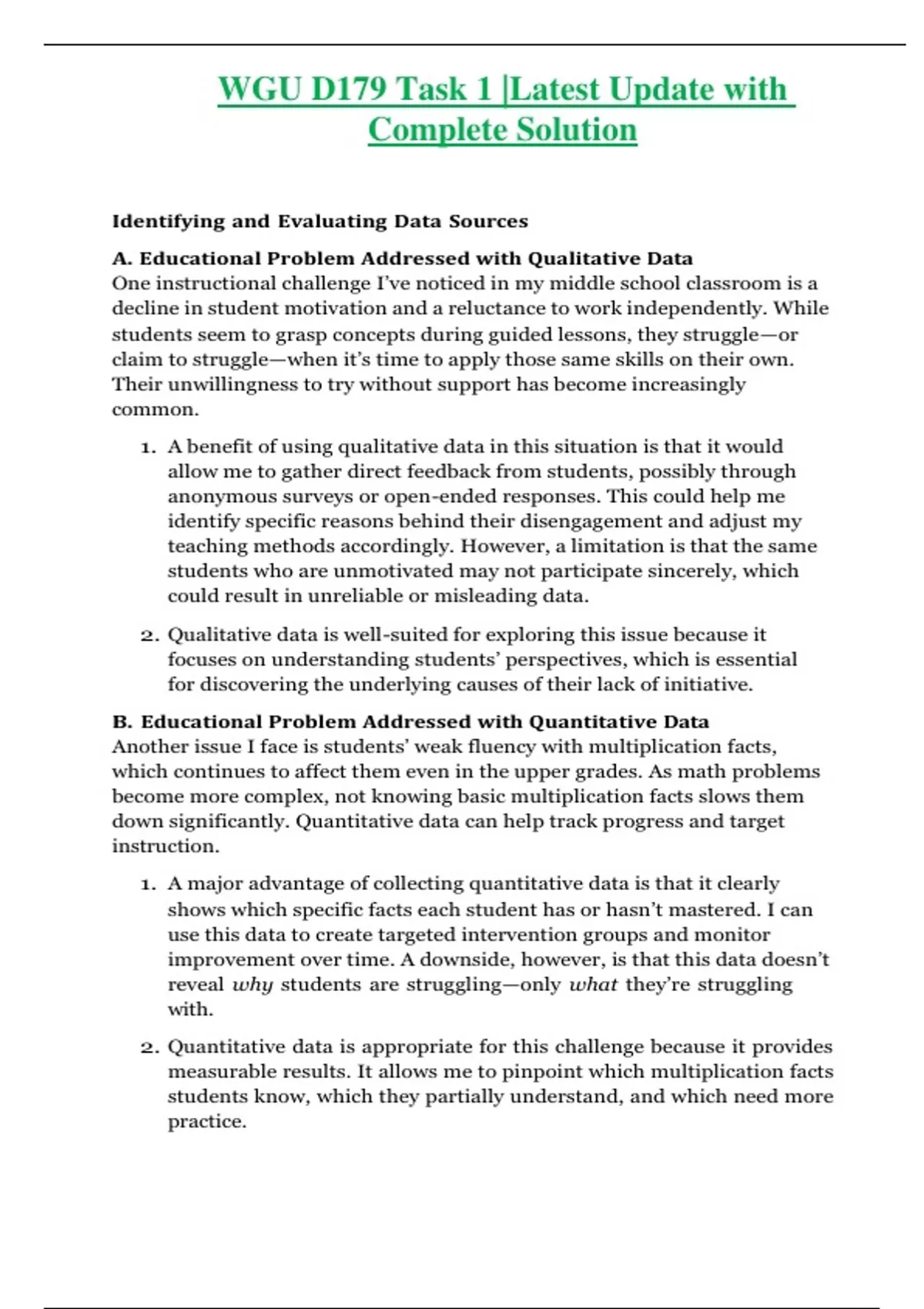 WGU D179 Task 1 |Latest Update with Complete Solution