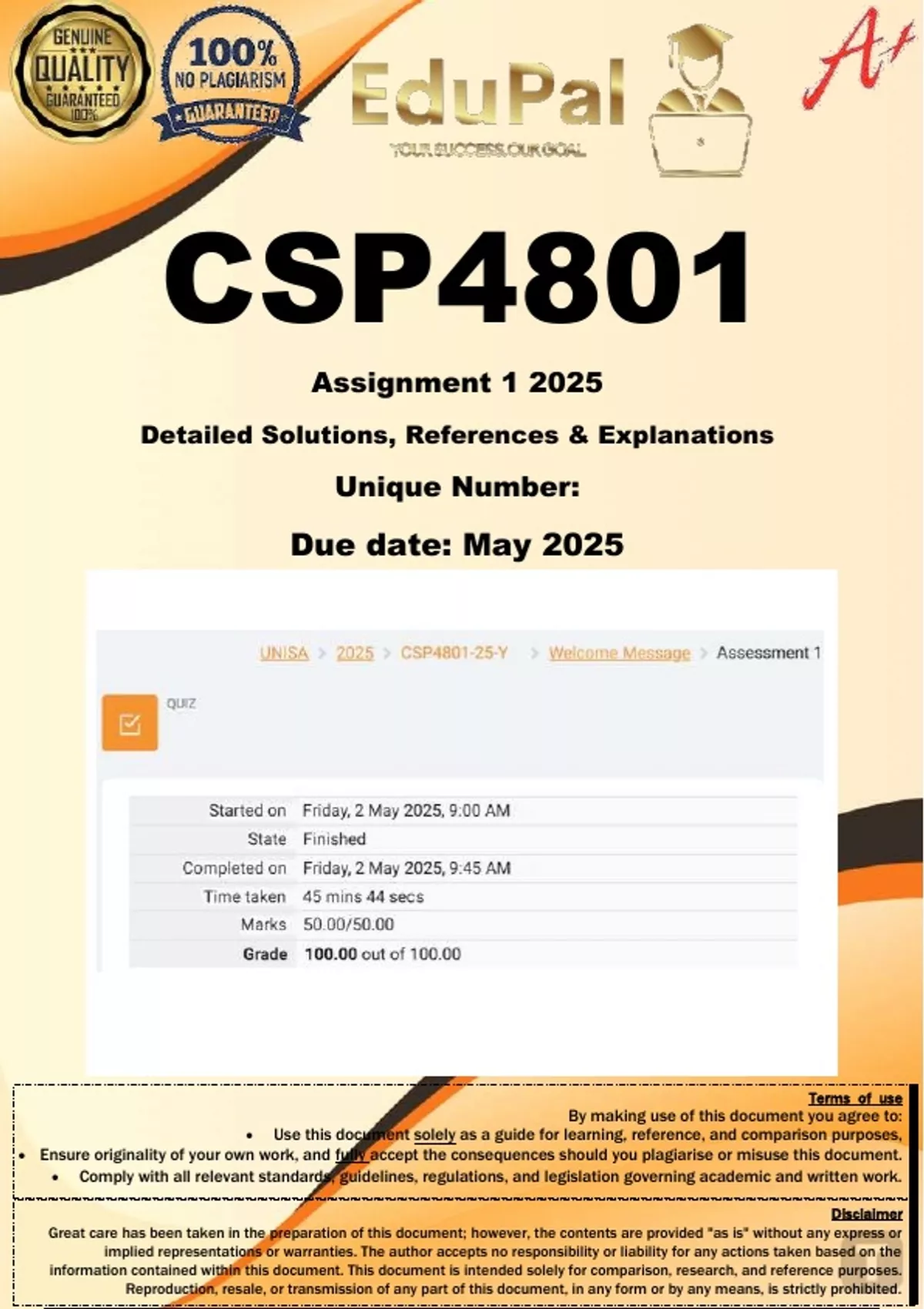 CSP4801 Assignment 1 QUIZ (COMPLETE ANSWERS) 2025