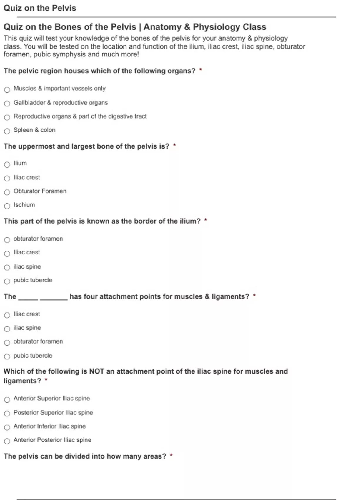 Quiz on the Bones of the Pelvis | Anatomy & Physiology Class