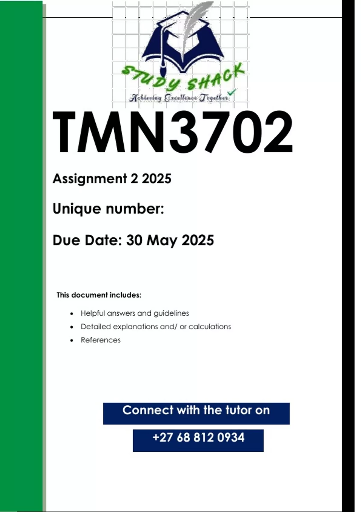 This document contains workings, explanations and solutions to the TMN3702 Assignment 2 (QUALITY ANSWERS) 2025. For assistance whats-app us on 0.6.8..8.1.2..0.9.3.4...