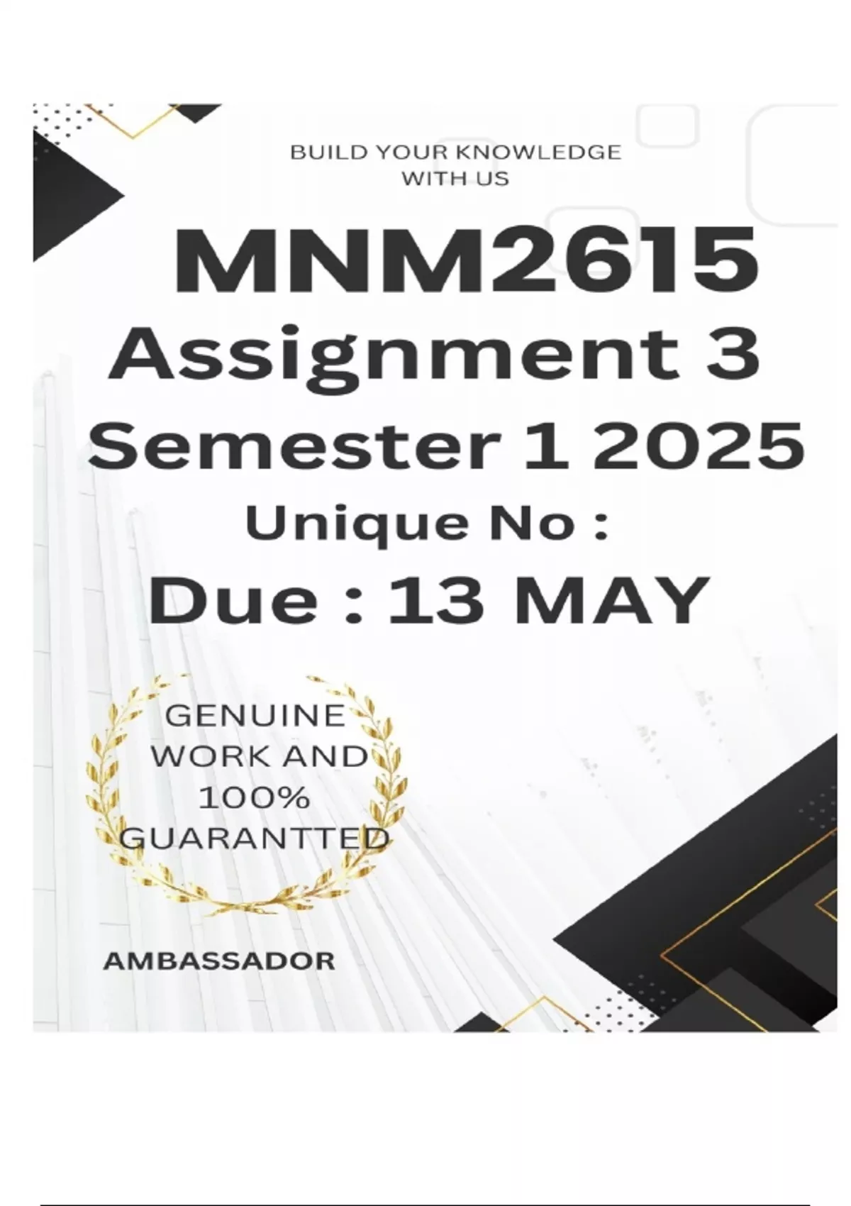 MNM2615 Assignment 3 PORTFOLIO (COMPLETE ANSWERS) Semester 1 2025 - DUE 13 May 2025; 100% TRUSTED Complete, trusted solutions and explanations.