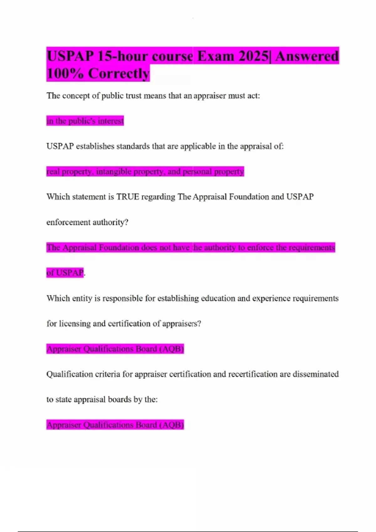 USPAP 15-hour course Exam 2025| Answered 100% Correctly