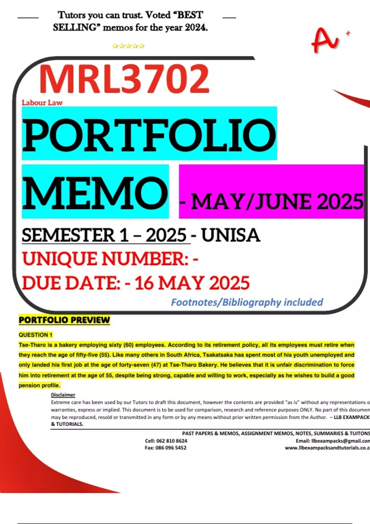 Fax: 086 096 5452 www.llbexampacksandtutorials.co.za