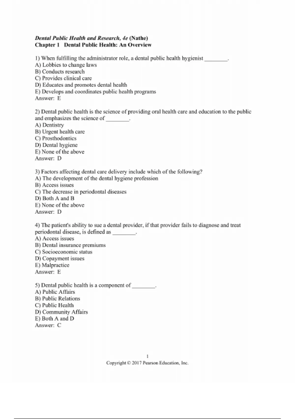 Test Bank for Dental Public Health & Research: Contemporary Practice for the Dental Hygienist 4th Edition, (Christine Nathe, 2016), Chapter 1-22 | All Chapters |Graded A+